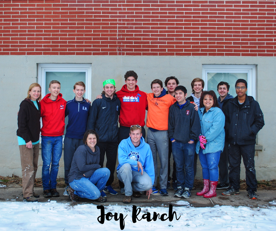 quite here yet. While most students and teachers on Spring Break would have enjoyed such a morning from home on the couch, sipping a warm cup of coffee and watching the snowy trees sway in the wind, ten high school teenagers and four members of their school staff chose to work through the cold and support the work of Joy Ranch!